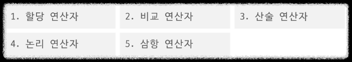 - 삼항 연산자 : 세 개의 피연산자를 가지며, 조건에 따라 두 개의 값 중 하나를 선택하여 반환