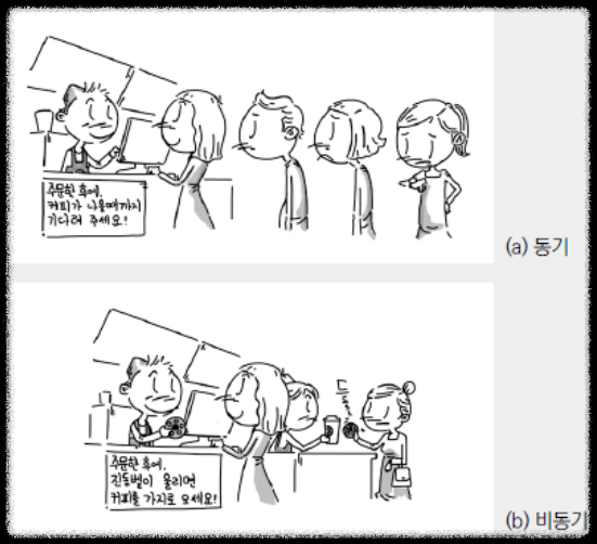 ※ 동기 / 비동기 그림 예시 ※ 자바스크립트가 한번에 하나의 처리만 가능한 이유 - 자바스크립트 엔진에 하나의 호출 스택(콜 스택)밖에 없기 때문이다. ※ 호출 스택(콜 스택)이란? (mdn) - 자바스크립트 엔진에서 실행 컨텍스트가 쌓여 있는 스택으로, 현재 어떤 함수가 실행중인지, 그 함수 내에서 어떤 함수가 호출되어야 하는지, 등을 제어한다.