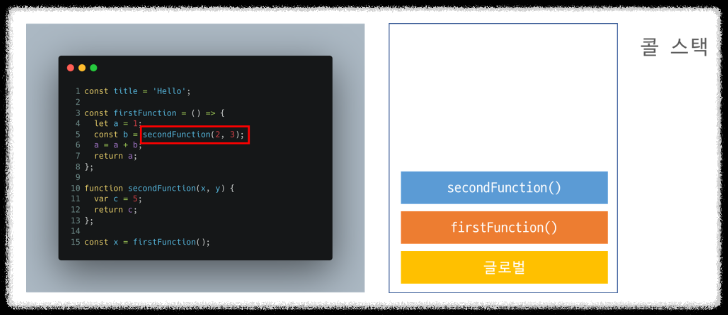 secondFunction()이 return과 동시에 콜 스택에서 빠짐