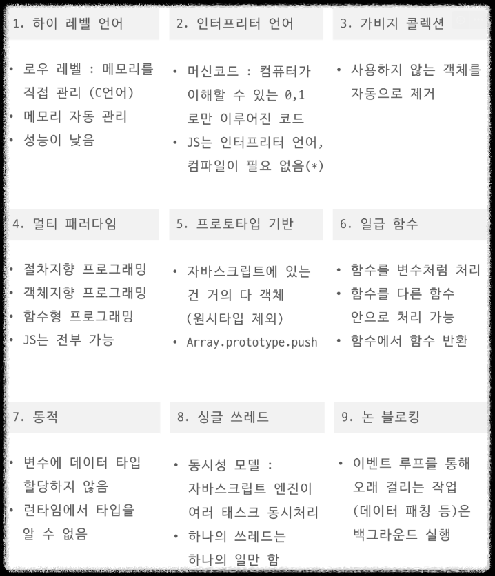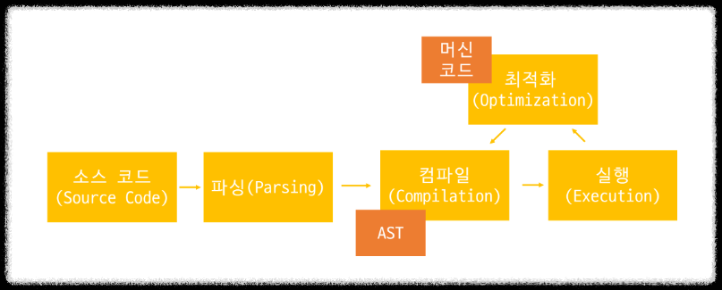 - 자바스크립트는 인터프리터 언어였지만, V8 엔진이 나온 이후로 성능 최적화를 위해 컴파일도 같이 진행을 한다.