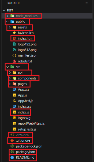 ※ public : 정적인 파일들이 위치한 곳이다. - assets : 이미지 파일들을 저장하는 곳이다. - index.html : 프로젝트의 진입점이다.