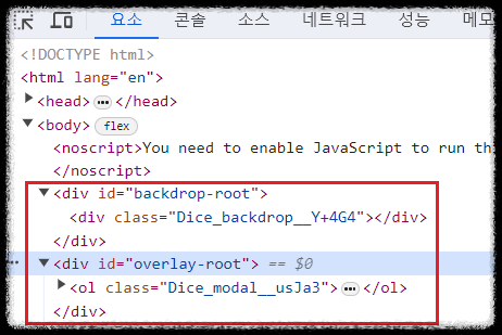 <div id="overlay-root"></div> // 모달을 렌더링해줄 새로운 html 요소 생성