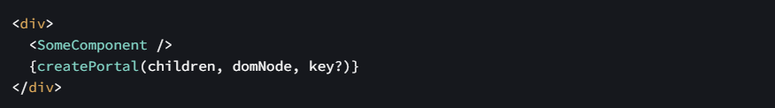 ※ Portal을 사용하는 이유 - 대표적으로 modal 같은 경우는 전체 컴포넌트에 뒤덮힐 수 있는 요소이기 때문에 최상위 요소(html, body) 하위에 있어야 한다. - 또한 부모 컴포넌트의 스타일링의 영향을 받게 되기때문에 별도의 번거로운 후처리를 해주어야 한다. - 이를 Portal을 사용하여 부모-자식 관계를 유지하면서 독립적으로 원하는 위치에서 동작을 할 수 있게 해준다.