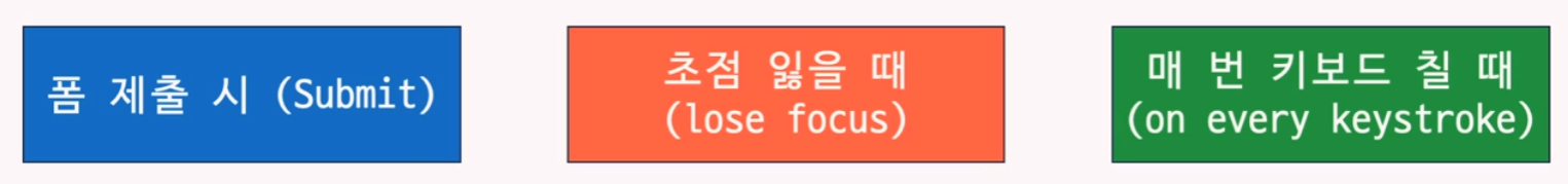 - 하나의 input에 대해 입력을 완전히 마치고 Blur 되기 전까지 경고를 표시하지 않는다.