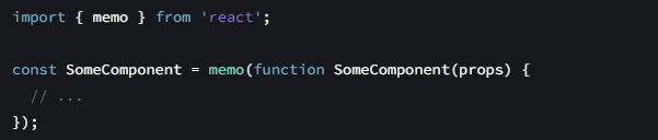 ※ memo란? - 컴포넌트의 성능 최적화를 위해 사용한다. -컴포넌트의 props가 변경되지 않은 경우 리렌더링을 건너뛸 수 있다. - 이전 props와 현재 props를 얕은비교를 통해 비교한다.